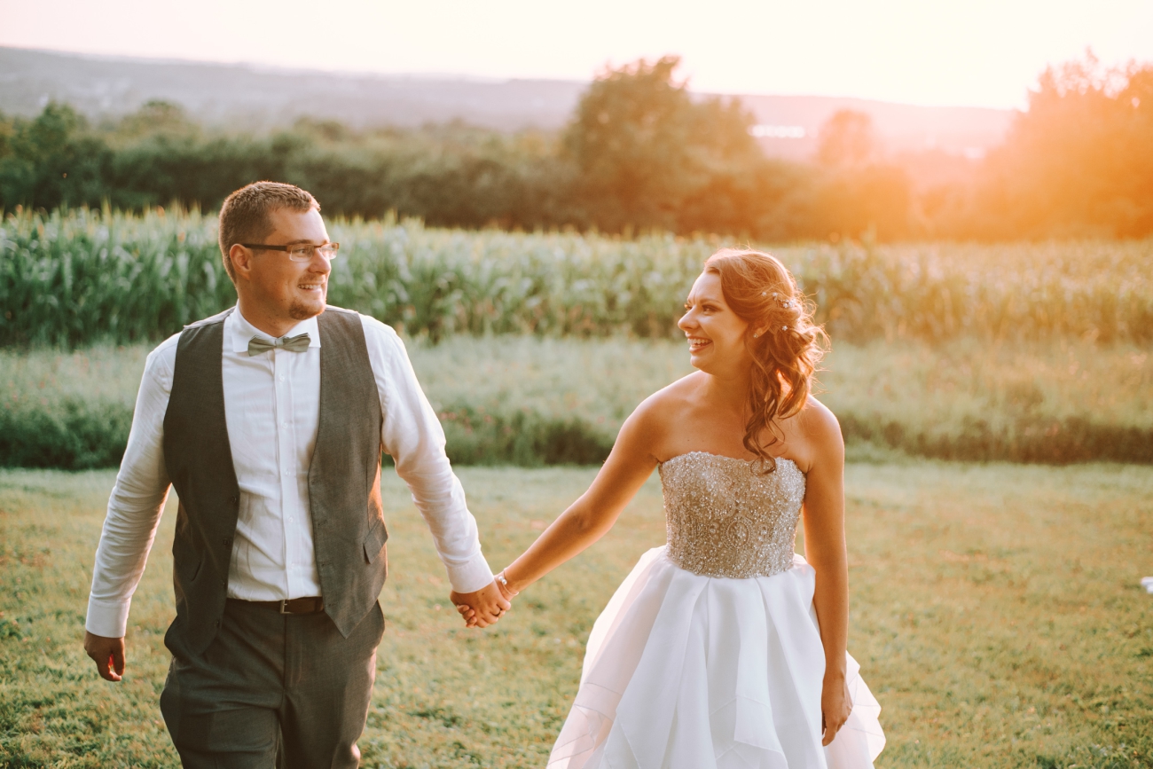 Katrina and Oria’s wedding was held at Red Barn 20 in Cazenovia. From the moment I walked through the door of where Katrina and her wedding party was getting ready and heard the theme song of Parks and Rec playing, I felt right at home! That same feeling continued throughout the rest of the day, Katrina and Oria, along with their wedding party and family were so welcoming and created a warm and comforting atmosphere! With tons of silly moments in the morning, while the two got ready for their day, there were surely just as many emotional moments tied in. In particular when Katrina and Oria exchanged letters to each other and read them back to back, even with the room filled with their wedding party and four other photographer and videographers it almost seemed like they were the only two in the room. If you could believe it, the tears weren’t done yet. Their ceremony held under a massive tree was another rollercoaster of emotions, laughing and crying, the vows and promises they made to continue loving each other as much and more than they did the day before. Then onto their reception, where Katrina and Oria made their way around to family for hugs and kisses but still made time for the best part, the dance floor! The most wonderful thing was watching as family and friends enjoyed their time together and all the smiling faces! As the sun was setting, everyone made their way from the dance floor and their lawn games to watch as Katrina and Oria made the plunge into the pool! Fearless and full of joy from their perfect day they ended things with a splash!